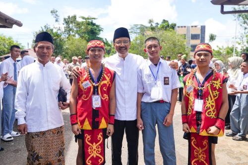 Gus Ipul tiba di SRT 53 Pontianak pukul 12.40 WIB. Ia disambut meriah dengan tarian bela diri tradisional dan yel-yel siswa, sebelum menyapa para murid dengan pelukan dan salam hangat.
