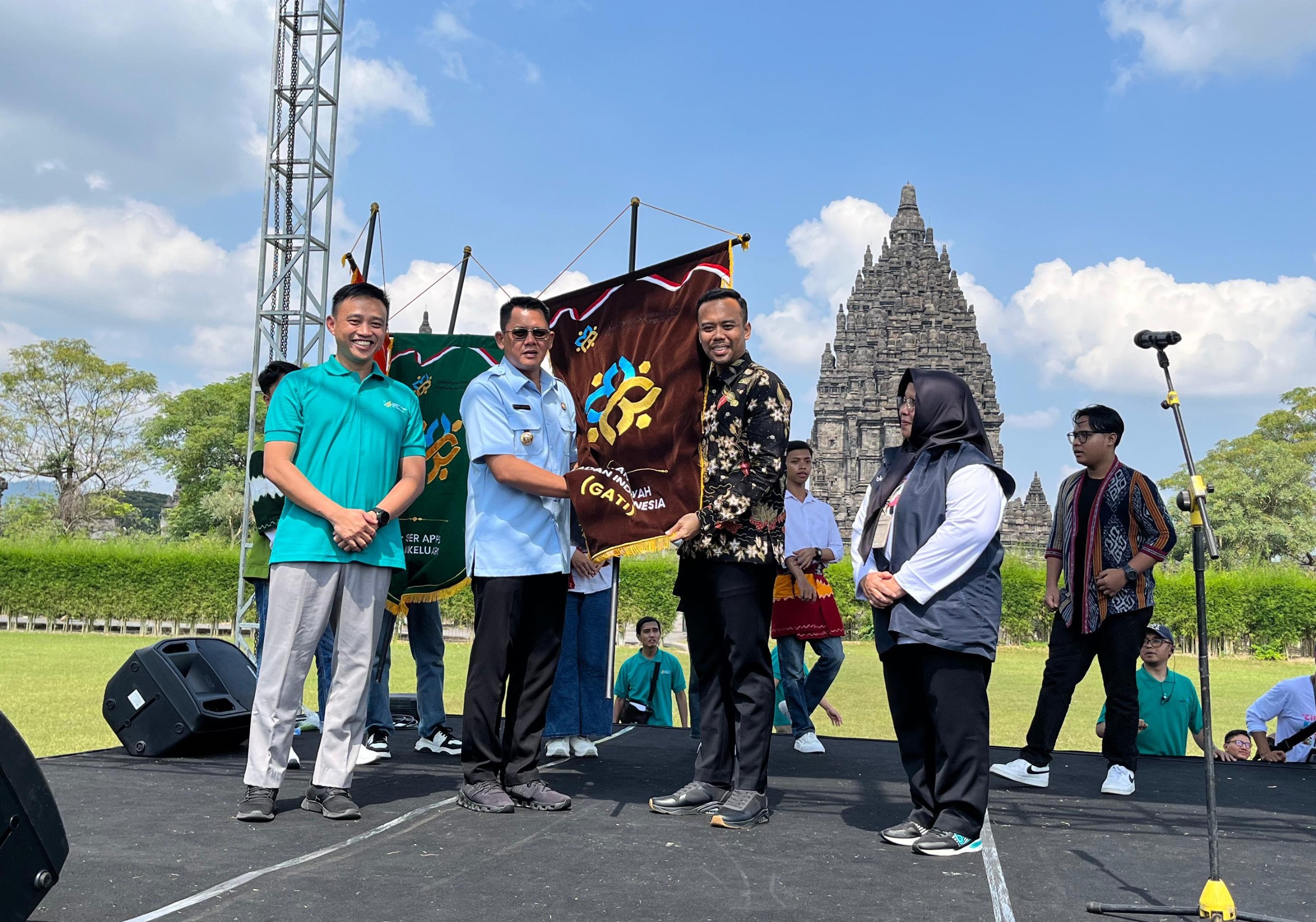 Wakil Bupati Sleman secara simbolis menyerahkan pataka 5 Quick Win BKKBN kepada Wakil Bupati Klaten, Benny Indra Ardhianto, sebagai tanda dilanjutkannya Kirab Bangga Kencana dari DIY ke Jawa Tengah.