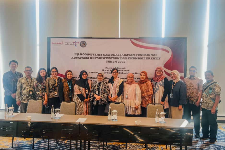 Oborselebes.com, Bekasi — Kementerian Pariwisata (Kemenpar) kembali menggelar Uji Kompetensi Nasional Jabatan Fungsional Adyatama Kepariwisataan dan Ekonomi Kreatif Tahun 2025 di Four Points by Sheraton, Bekasi. Kegiatan yang berlangsung pada 7–9 Oktober 2025 ini menjadi langkah nyata pemerintah dalam meningkatkan kualitas sumber daya manusia (SDM) unggul di sektor pariwisata dan ekonomi kreatif.